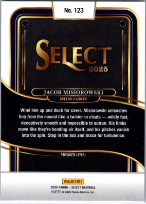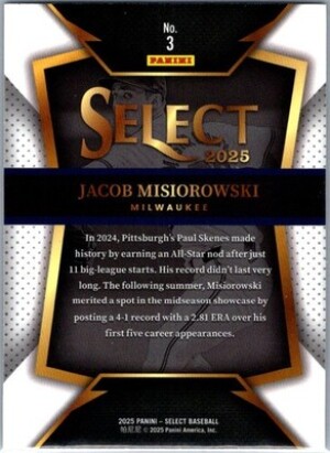 2025 Panini Select #3 Jacob Misiorowski Select Throwback