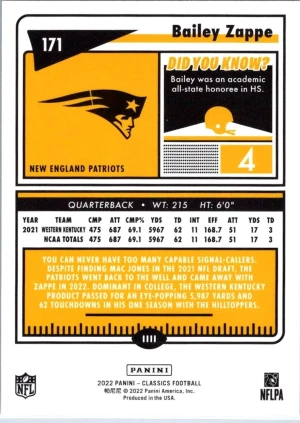 2022 Panini Donruss Elite Bailey Zappe Razzle Dazzle