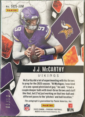 1/10!! 2025 Panini JJ McCarthy Gold Scorched Signatures