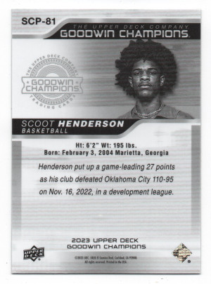Scoot Henderson RC /99 - 2022 Upper Deck Goodwin Champions Exquisite Collection Rookie Materials Auto #RAR-SH