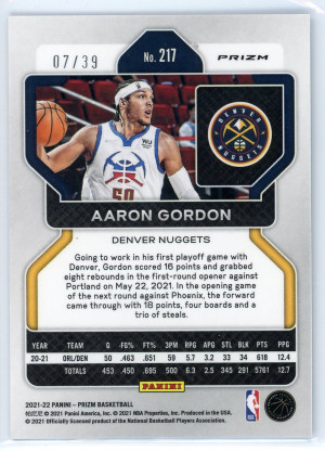 2021-22 Panini Prizm #217 Aaron Gordon Prizms Choice Blue 7/39