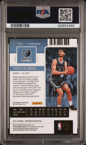 2021 Panini Contenders Santi Aldama Blue Shimmer Auto /20 PSA 9