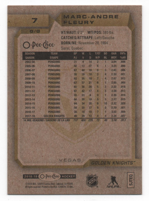 2018-19 O-Pee-Chee Glossy Gold Border Parallel #7 Marc-Andre Fleury