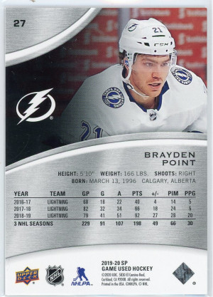 2019-20 SP Game Used #27 Brayden Point Rainbow /275