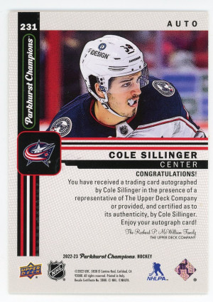 2022-23 Parkhurst Champions #231 Cole Sillinger Autograph