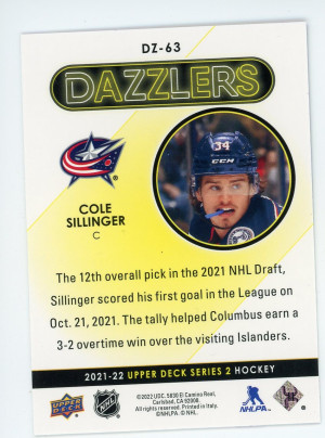 2021-22 Upper Deck Cole Sillinger Dazzlers Purple