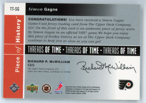 2002-03 UD Piece of History Simon Gagne Threads of Time Jersey #TT-SG
