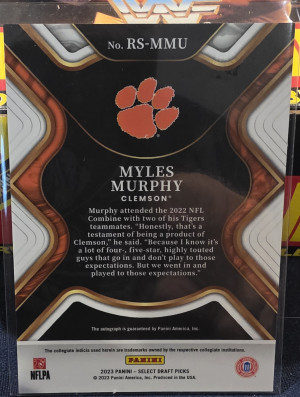 2023 Panini Select Draft Picks RS-MMU Myles Murphy Gold Lazer Prizm Autograph #1/75