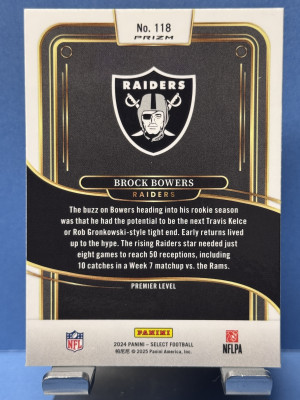 2024 Panini Select #118 Brock Bowers Premier Level Red/Black Shock Prizm RC