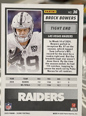2025 Score - Brock Bowers #36