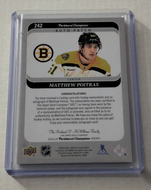 2023-24 Upper Deck Stature Matthew Poitras Rookie Auto Patch (44/49)