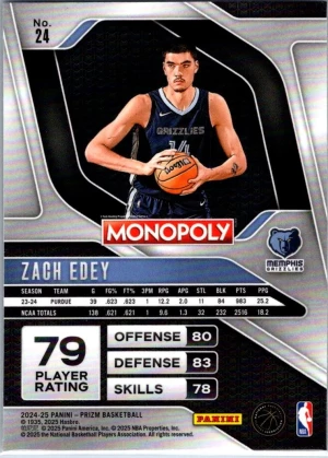 2024-25 Panini Prizm Monopoly #24 Zach Edey