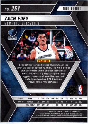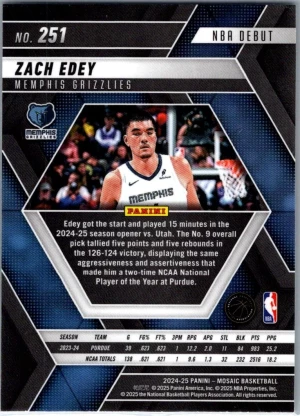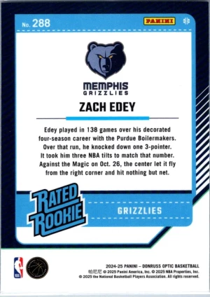 2024-25 Panini Prizm Fast Break Disco Image Variation Zach Edey Grizzlies Rc 249
