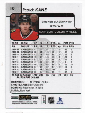 2017-18 O-Pee-Chee Platinum ePack Rainbow Color Wheel Parallel #10 Patrick Kane