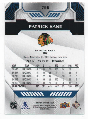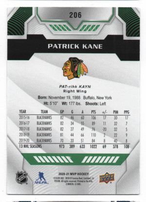2020-21 Upper Deck MVP ePack Green Script Parallel #206 Patrick Kane