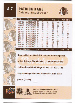 2021-22 Upper Deck Parkhurst ePack 2005-06 Retro Achievements #AV-7 Patrick Kane