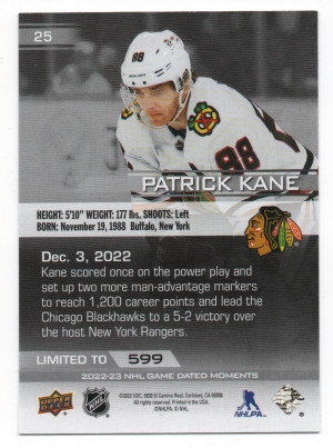 2022-23 Upper Deck Game Dated Moments #25 Patrick Kane - December 3, 2022 /599