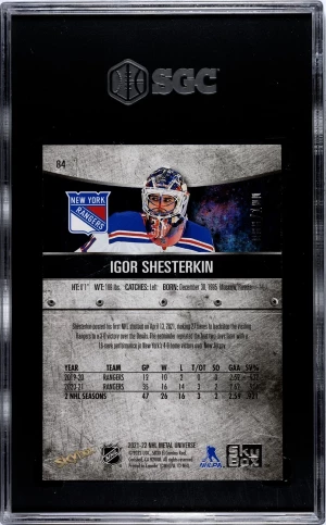2021-22 Skybox Metal Universe Igor Shesterkin PMG Red /100 SGC 9 Mint