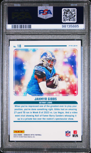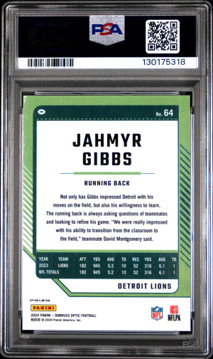 2023 Panini Donruss Optic Jahmyr Gibbs Green Velocity PSA 10