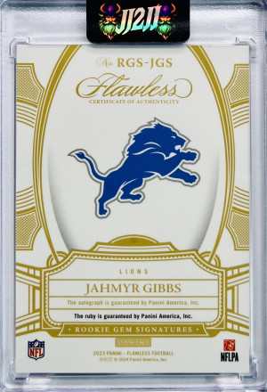 2023 Panini Flawless Rookie Gem Signatures Jahmyr Gibbs Auto /20 Ruby