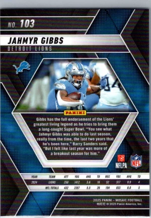 2025 Panini Mosaic #103 Jahmyr Gibbs