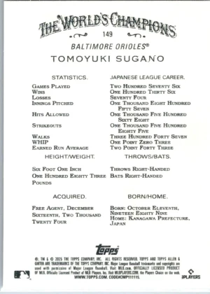 2025 Topps Allen & Ginter #149 Tomoyuki Sugano