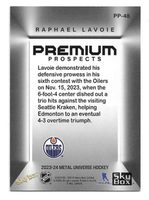 2023-24 Metal Universe SkyBox Premium Prospects #PP48 Raphael Lavoie (RC) - Edmonton Oilers