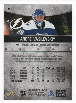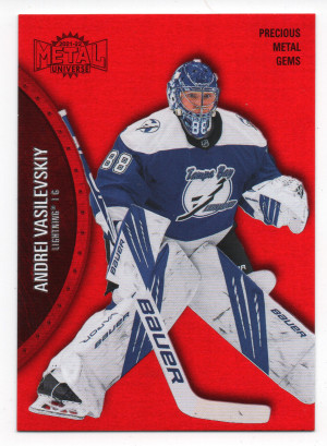 Andrei Vasilevskiy - 2021-22 Skybox Metal Universe Precious Metal Gems Red Parallel #131 - Alternate Jersey /100
