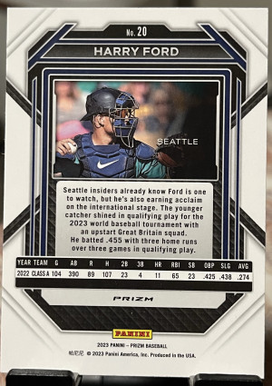 2023 Panini Prizm Harry Ford #20 (RC) Cracked Blue Ice Prizm Seattle Mariners