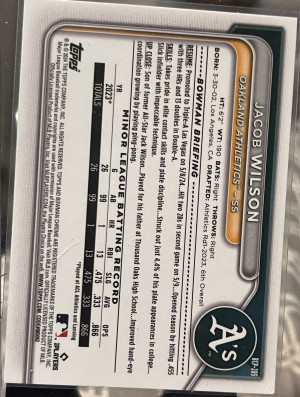 Jacob Wilson 2023 Bowman Draft #BD121 RC Autographed Witnessed By JSA