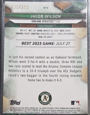 2023 Bowman's Best Mini Diamond Refractor Jacob Wilson #TP-9 Athletics #/299
