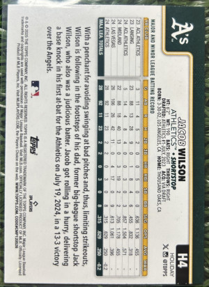 Jacob Wilson #H4 Rookie Silver Glitter Card 2025 Topps Holiday