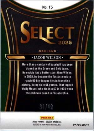 2025 Panini Select #15 Jacob Wilson Phenomenon Blue Prizm #/49