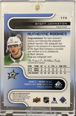 WYATT JOHNSTON - 2022 UD Credentials Debut Ticket Access Auto /25, PSA 9