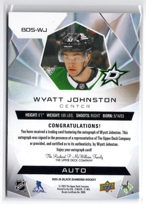 25/26 BLACK DIAMOND DIAMOND STARS AUTOGRAPH #BDS-WJ WYATT JOHNSTON (14/25)