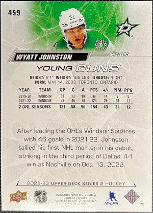 2022-23 Upper Deck Series 2 Young Guns Wyatt Johnston #459