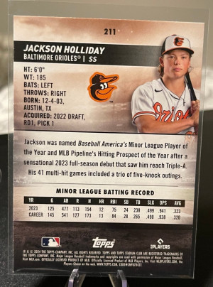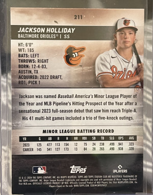 2024 Stadium Club - Pink Foil#211 Jackson Holliday,(RC) Baltimore Orioles