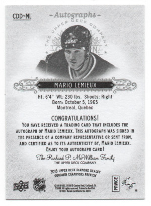 Mario Lemieux - 2018 Upper Deck Diamond Dealer Goodwin Champions Preview Goodwin Autographs #CDD-ML