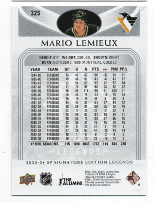 Mario Lemieux 2020-21 SP Signature Edition Legends Evolve Auto 17/35