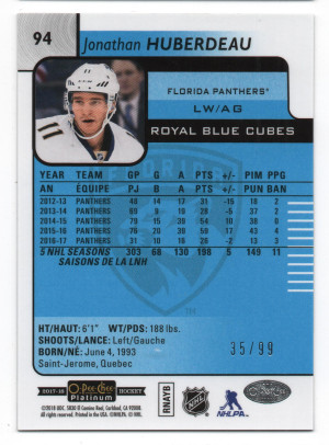 2017-18 O-Pee-Chee Platinum Royal Blue Cubes Parallel #94 Jonathan Huberdeau /99