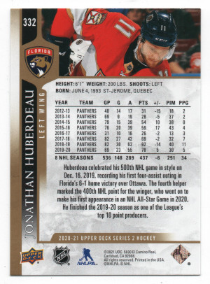 2020-21 Upper Deck ePack Speckled Rainbow Parallel #332 Johanthan Huberdeau