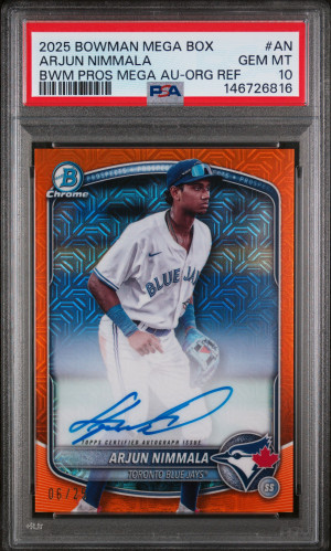 2025 Bowman Mega Box Bowman Prospect Mega Autographs Arjun Nimmala Bwm Pros Mega Au-Org Ref