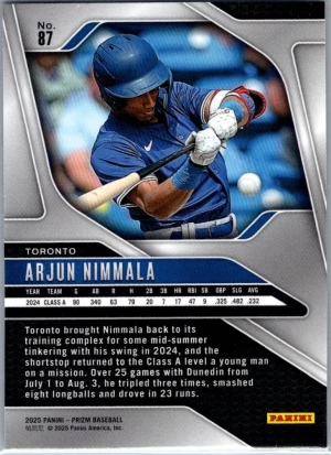 2025 Panini Prizm #87 Arjun Nimmala (RC) - Toronto Blue Jays