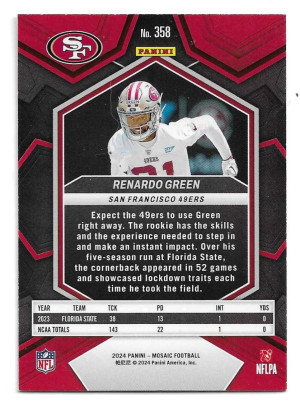 2024 Panini Mosaic #358 Renardo Green (RC) - San Francisco 49ers