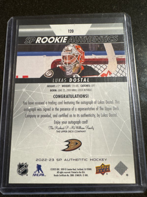 Lukas Dostal Sp Rookie Authentics Auto
