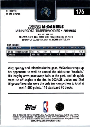 2025-26 Topps Chrome #176 Jaden McDaniels