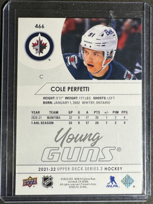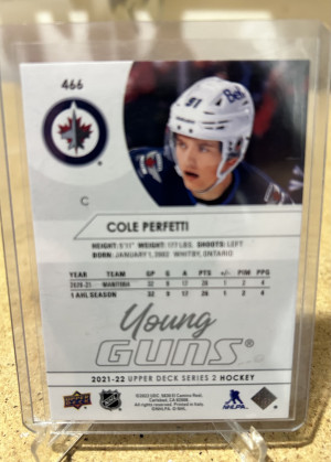 2021-22 Upper Deck 466 Cole Perfetti Young Guns