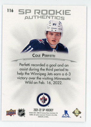2021-22 SP #116 Cole Perfetti Silver Spectrum Rookie Authentics /599