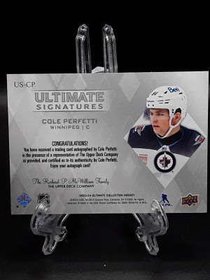2023-24 UD Ultimate Collection #US-PE Cole Perfetti Ultimate Signatures Auto