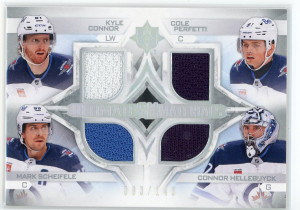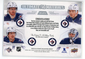 2023-24 Ultimate Quad Materials Kyle Connor Cole Perfetti Mark Scheifele Connor Hellebuyck /149